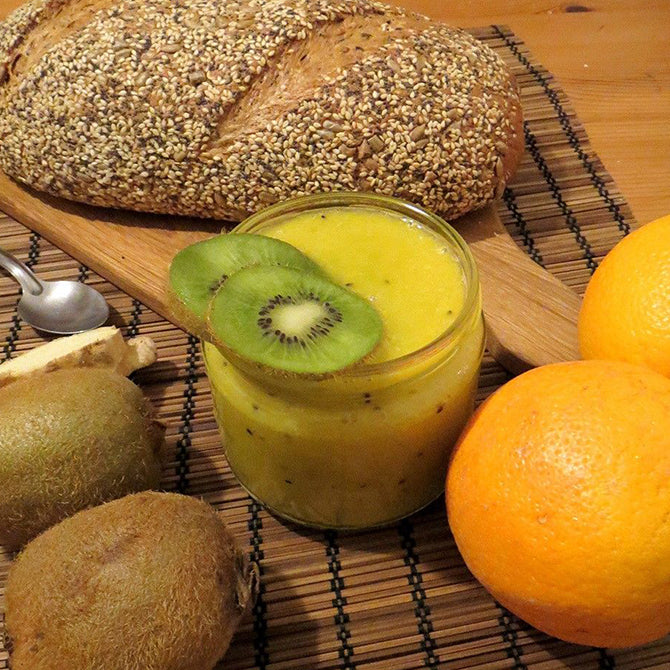 - Mélangez doucement et décorez avec une tranche de kiwi et un brin de menthe.