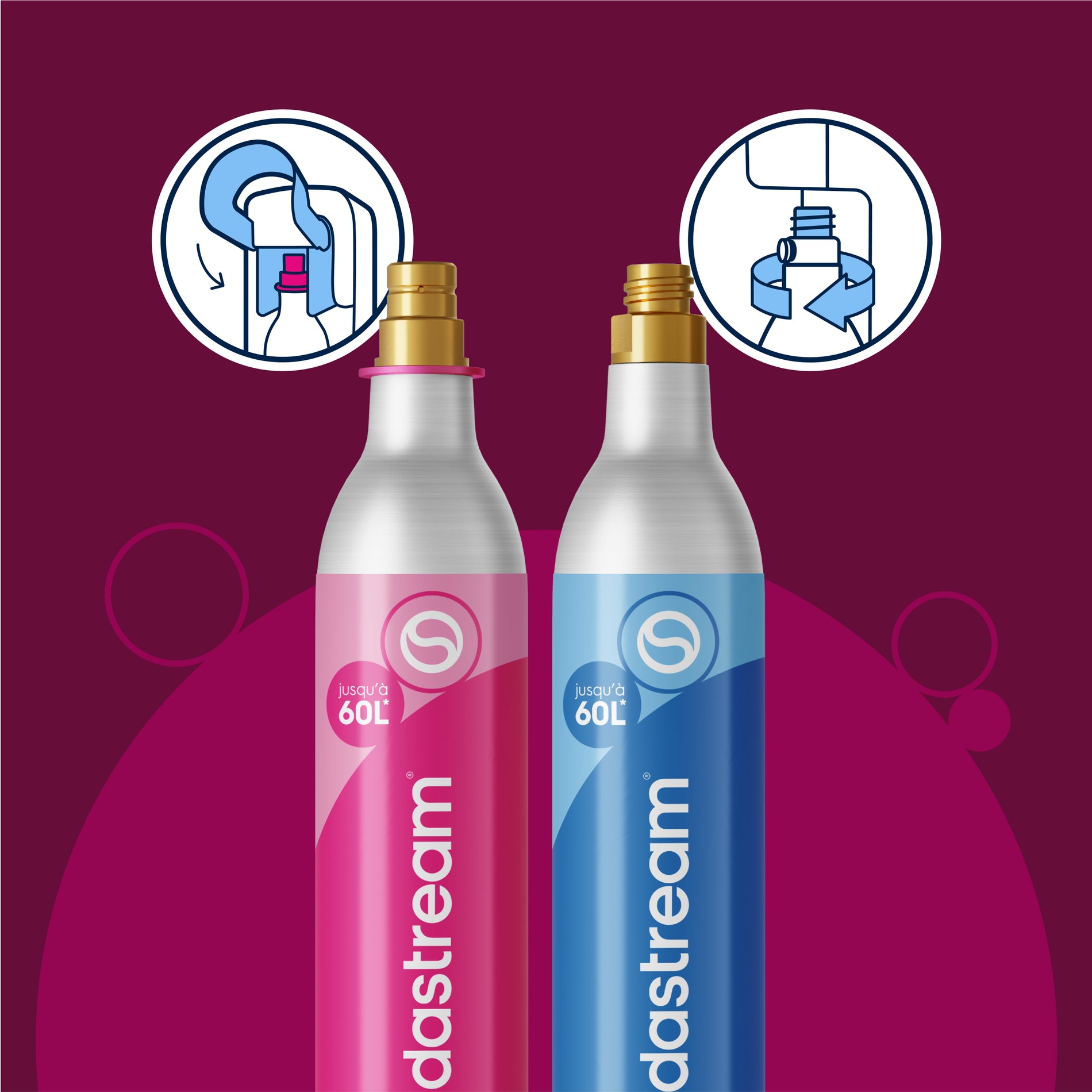 Remplacez votre cylindre vide par un cylindre plein et ne payez que le prix du CO2. Chaque cylindre permet de gazéifier jusqu'à 60L* d’eau.