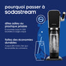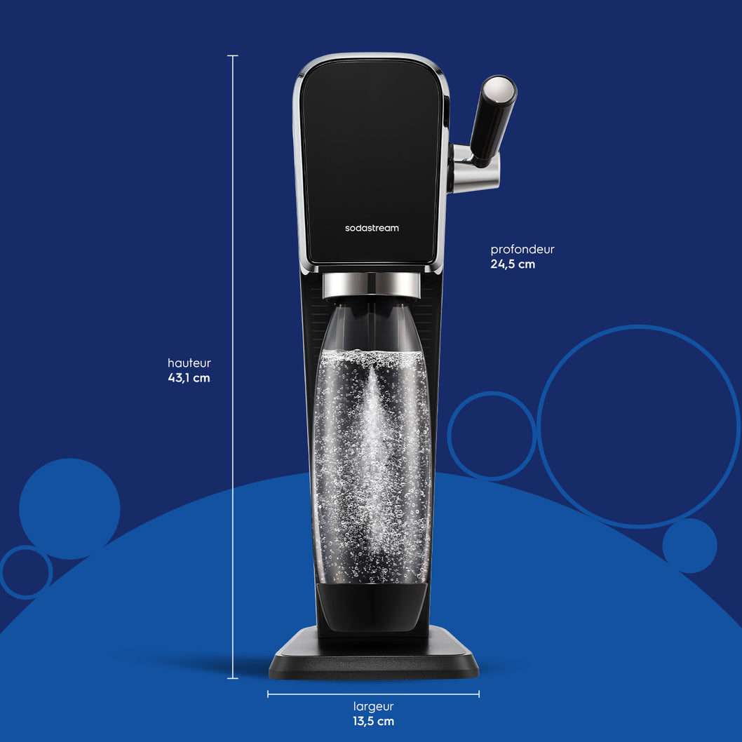 Préparez facilement votre eau pétillante maison avec la machine à eau pétillante SodaStream ART®. Son design rétro élégant et son levier de gazéification ergonomique permettent de gazéifier l’eau du robinet en quelques secondes tout en ajustant l’intensité des bulles selon vos envies.
