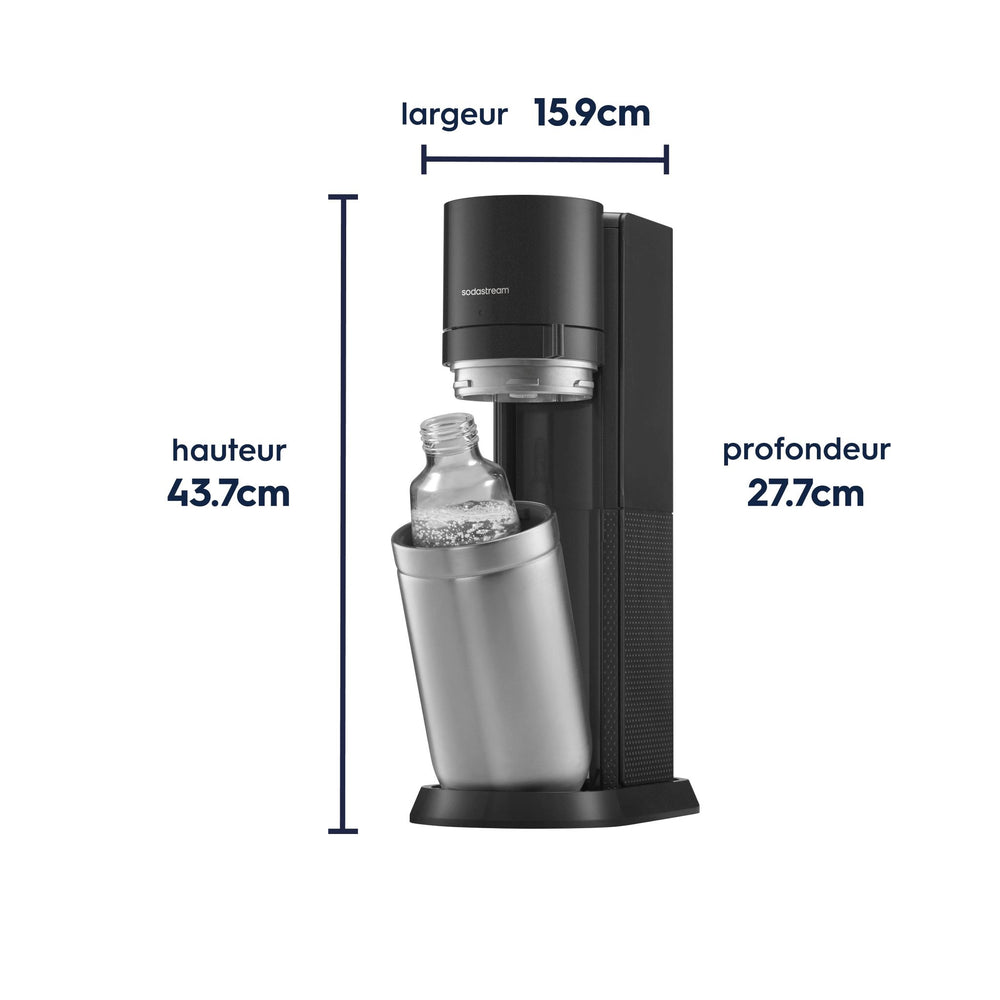 La SodaStream Duo est la façon la plus avancée de faire pétiller votre eau. Grâce à la combinaison de bouteilles en verre et en plastique lavables au lave-vaisselle, vous ne pourrez plus jamais vous passer de vos boissons préférées, que ce soit à la maison ou en déplacement.