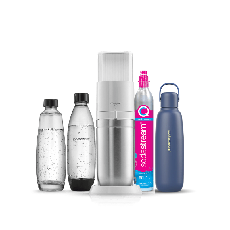La nouvelle sodastream DUO® est la façon la plus avancée de faire pétiller votre eau. Grâce à la combinaison de bouteilles en verre et en plastique lavables au lave-vaisselle, vous ne pourrez plus vous passer de vos boissons préférées, que ce soit à la maison ou en déplacement.