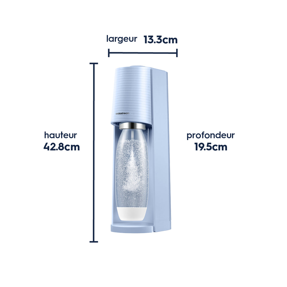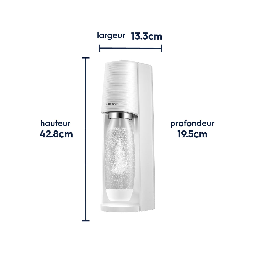 Avec son design compact aux finitions mates et sa simplicité d'utilisation, la machine à eau Gazeuse SodaStream Terra transformera votre eau du robinet en eau pétillante en quelques secondes ! Facile et intuitive, elle est livrée avec des bouteilles compatibles lave-vaisselle et sa recharge de gaz Quick Connect à clipser.